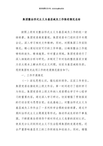 / 【七哥公文】2024年:集团整治形式主义为基层减负工作推进情况总结+更多免费公文+VX:QiGeGongWen2024