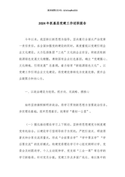 / 【七哥公文】2024年:2024年抓基层党建工作述职报告+更多免费公文+VX:QiGeGongWen2024