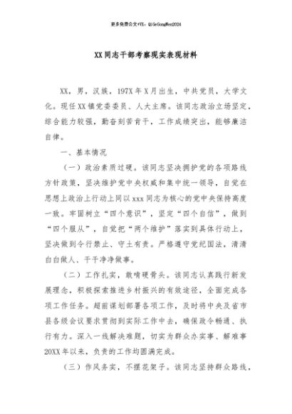 / 【七哥公文】2024年:XX同志干部考察现实表现材料+更多免费公文+VX:QiGeGongWen2024