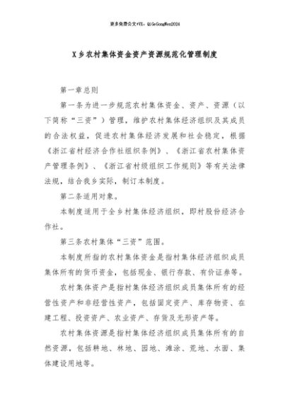 / 【七哥公文】2024年:X乡农村集体资金资产资源规范化管理制度+更多免费公文+VX:QiGeGongWen2024