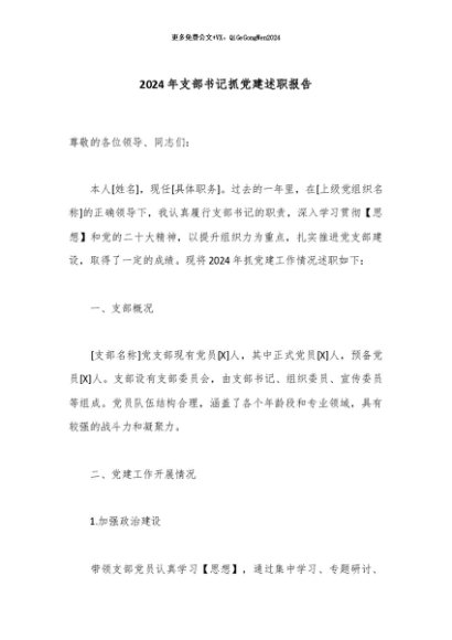 / 【七哥公文】2024年:2024年支部书记抓党建述职报告+更多免费公文+VX:QiGeGongWen2024