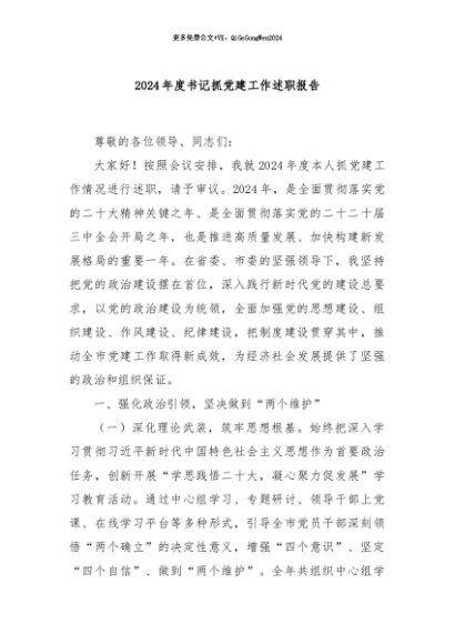 / 【七哥公文】2024年:2024年度书记抓党建工作述职报告+更多免费公文+VX:QiGeGongWen2024