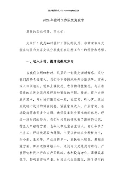 / 【七哥公文】2024年:2024年驻村工作队交流发言+更多免费公文+VX:QiGeGongWen2024