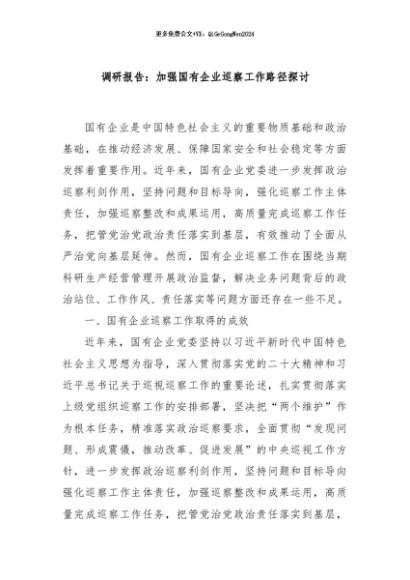 / 【七哥公文】2024年:调研报告:加强国有企业巡察工作路径探讨+更多免费公文+VX:QiGeGongWen2024