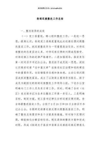 / 【七哥公文】2024年:街道巡察整改工作总结+更多免费公文+VX:QiGeGongWen2024