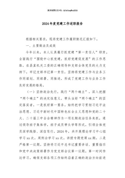 / 【七哥公文】2024年:2024年度党建工作述职报告+更多免费公文+VX:QiGeGongWen2024