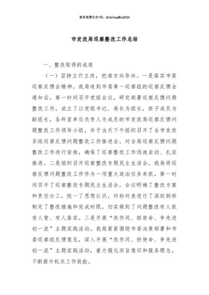 / 【七哥公文】2024年:市发改局巡察整改工作总结+更多免费公文+VX:QiGeGongWen2024