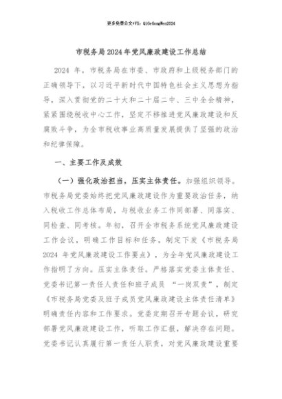 / 【七哥公文】2024年:市税务局2024年党风廉政建设工作总结+更多免费公文+VX:QiGeGongWen2024