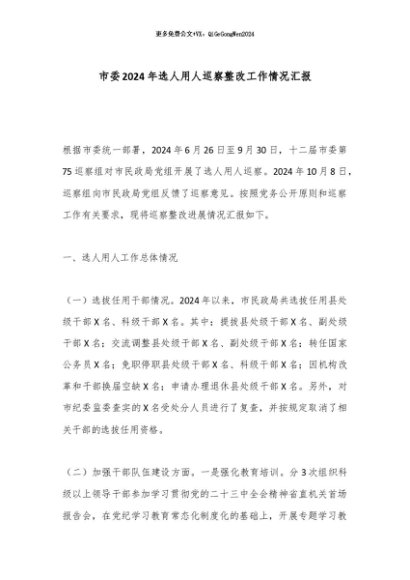 / 【七哥公文】2024年:市委2024年选人用人巡察整改工作情况汇报+更多免费公文+VX:QiGeGongWen2024