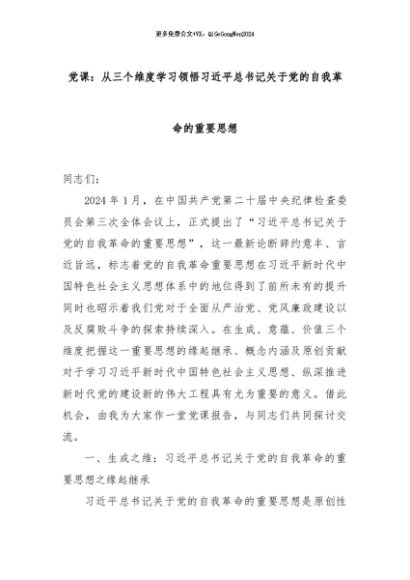 【七哥公文】2024年:党课:从三个维度学习领悟习近平总书记关于党的自我革命的重要思想+更多免费公文+VX:QiGeGongWen2024
