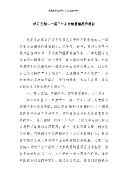 / 【七哥公文】2024年:学习贯彻二十届三中全会精神情况的报告+更多免费公文+VX:QiGeGongWen2024