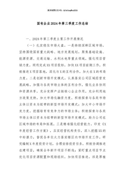 / 【七哥公文】2024年:国有企业2024年第三季度工作总结+更多免费公文+VX:QiGeGongWen2024