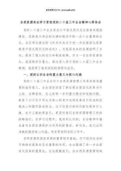 【七哥公文】2024年:自然资源局在学习贯彻党的二十届三中全会精神心得体会+更多免费公文+VX:QiGeGongWen2024
