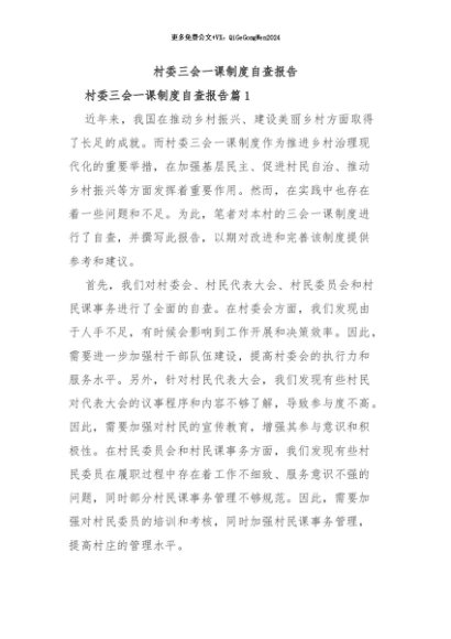 / 【七哥公文】2024年:村委三会一课制度自查报告+更多免费公文+VX:QiGeGongWen2024