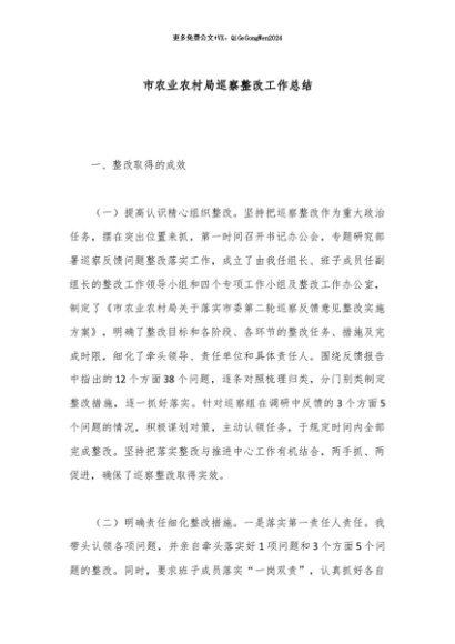 / 【七哥公文】2024年:市农业农村局巡察整改工作总结+更多免费公文+VX:QiGeGongWen2024