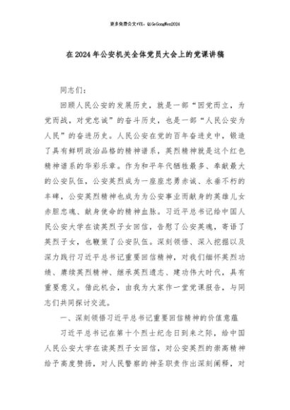 / 【七哥公文】2024年:在2024年公安机关全体党员大会上的党课讲稿+更多免费公文+VX:QiGeGongWen2024