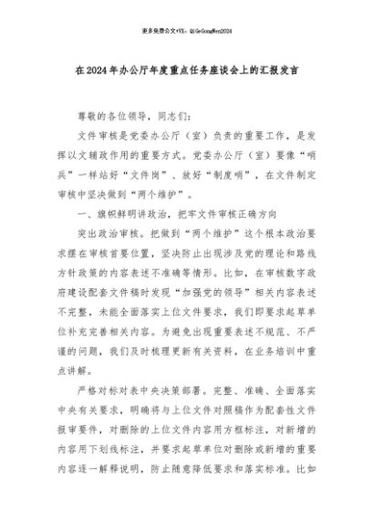 / 【七哥公文】2024年:在2024年办公厅年度重点任务座谈会上的汇报发言+更多免费公文+VX:QiGeGongWen2024