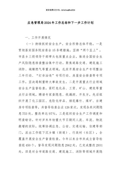 / 【七哥公文】2024年:应急管理局2024年工作总结和下一步工作计划+更多免费公文+VX:QiGeGongWen2024