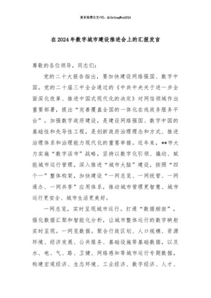 / 【七哥公文】2024年:在2024年数字城市建设推进会上的汇报发言+更多免费公文+VX:QiGeGongWen2024