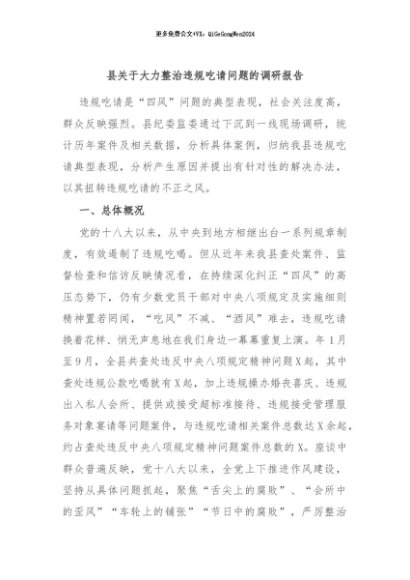 / 【七哥公文】2024年:县关于大力整治违规吃请问题的调研报告+更多免费公文+VX:QiGeGongWen2024