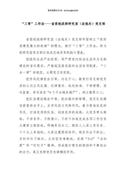 【七哥公文】2024年:“三常”工作法——省委统战部研究室(法规处)党支部+更多免费公文+VX:QiGeGongWen2024