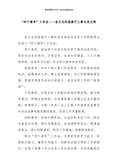 【七哥公文】2024年:“四个清单”工作法——省文化和旅游厅人事处党支部+更多免费公文+VX:QiGeGongWen2024