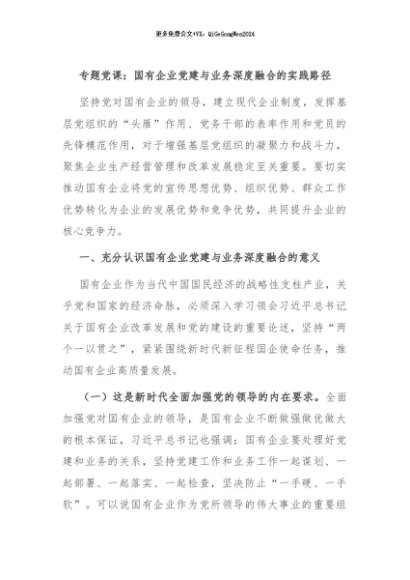 / 【七哥公文】2024年:专题党课:国有企业党建与业务深度融合的实践路径+更多免费公文+VX:QiGeGongWen2024