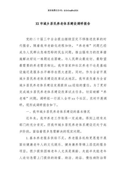 / 【七哥公文】2024年:XX市城乡居民养老体系建设调研报告+更多免费公文+VX:QiGeGongWen2024