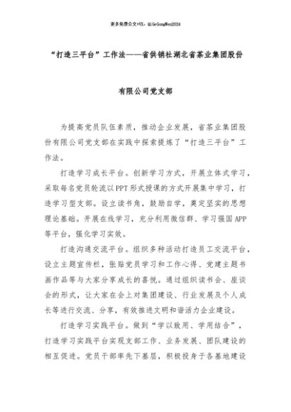 【七哥公文】2024年:“打造三平台”工作法——省供销社湖北省茶业集团股份有限公司党支部+更多免费公文+VX:QiGeGongWen2024