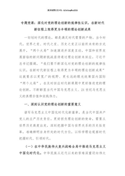 【七哥公文】2024年:专题党课:深化对党的理论创新的规律性认识,在新时代新征程上取得更为丰硕的理论创新成果+更多免费公文+VX:QiGeGongWen2024