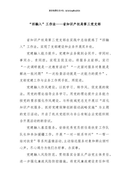 / 【七哥公文】2024年:“四融入”工作法——省知识产权局第三党支部+更多免费公文+VX:QiGeGongWen2024
