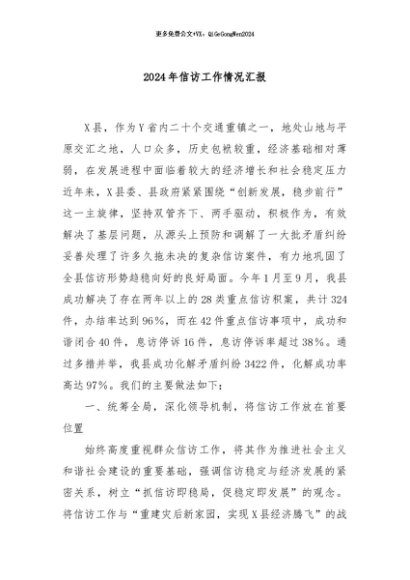 / 【七哥公文】2024年:2024年信访工作情况汇报+更多免费公文+VX:QiGeGongWen2024