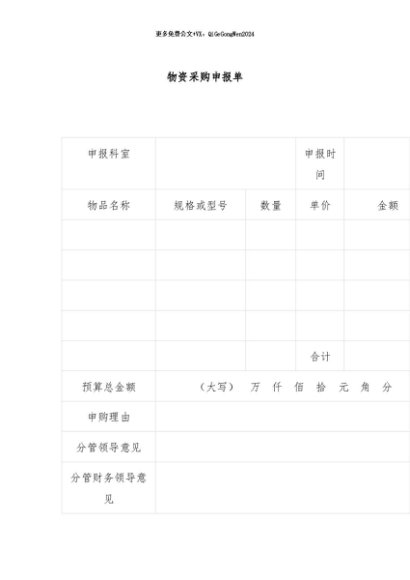 【七哥公文】2024年:物资采购申报单+更多免费公文+VX:QiGeGongWen2024