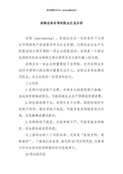 / 【七哥公文】2024年:采购业务内审风险点汇总分析+更多免费公文+VX:QiGeGongWen2024