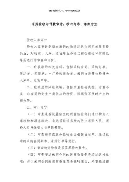 / 【七哥公文】2024年:采购验收与付款审计:核心内容、详细方法+更多免费公文+VX:QiGeGongWen2024