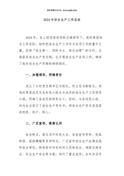 / 【七哥公文】2024年:2024年安全生产工作总结+更多免费公文+VX:QiGeGongWen2024