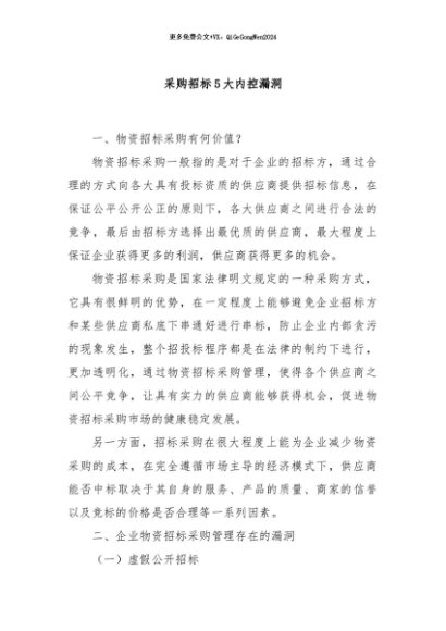 / 【七哥公文】2024年:采购招标5大内控漏洞+更多免费公文+VX:QiGeGongWen2024