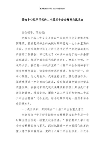 / 【七哥公文】2024年:理论中心组学习党的二十届三中全会精神交流发言+更多免费公文+VX:QiGeGongWen2024