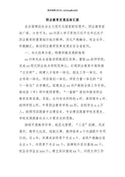 / 【七哥公文】2024年:职业教育发展总结汇报+更多免费公文+VX:QiGeGongWen2024