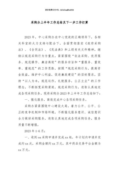 / 【七哥公文】2024年:采购办上半年工作总结及下一步工作打算+更多免费公文+VX:QiGeGongWen2024