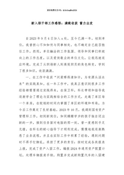 / 【七哥公文】2024年:新入职干部工作感悟:满载收获 蓄力出发+更多免费公文+VX:QiGeGongWen2024