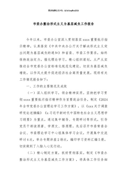 / 【七哥公文】2024年:市委办整治形式主义为基层减负工作报告+更多免费公文+VX:QiGeGongWen2024