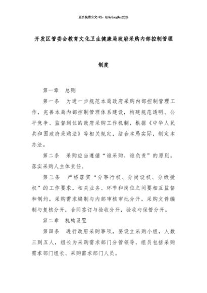 【七哥公文】2024年:开发区管委会教育文化卫生健康局政府采购内部控制管理制度+更多免费公文+VX:QiGeGongWen2024