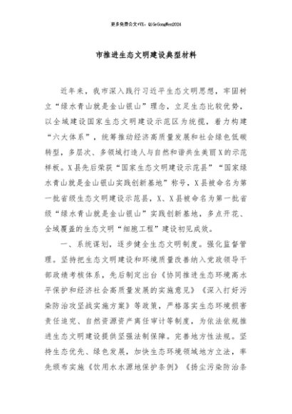 / 【七哥公文】2024年:市推进生态文明建设典型材料+更多免费公文+VX:QiGeGongWen2024
