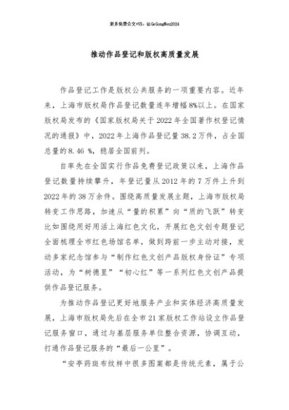 / 【七哥公文】2024年:推动作品登记和版权高质量发展+更多免费公文+VX:QiGeGongWen2024