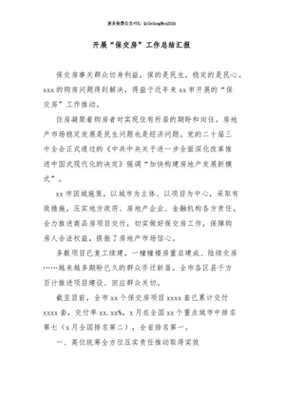 / 【七哥公文】2024年:开展“保交房”工作总结汇报+更多免费公文+VX:QiGeGongWen2024