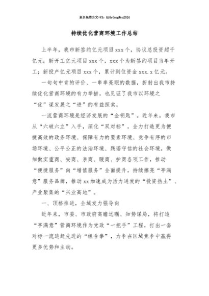 / 【七哥公文】2024年:持续优化营商环境工作总结+更多免费公文+VX:QiGeGongWen2024