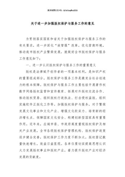 / 【七哥公文】2024年:关于进一步加强版权保护与服务工作的意见+更多免费公文+VX:QiGeGongWen2024