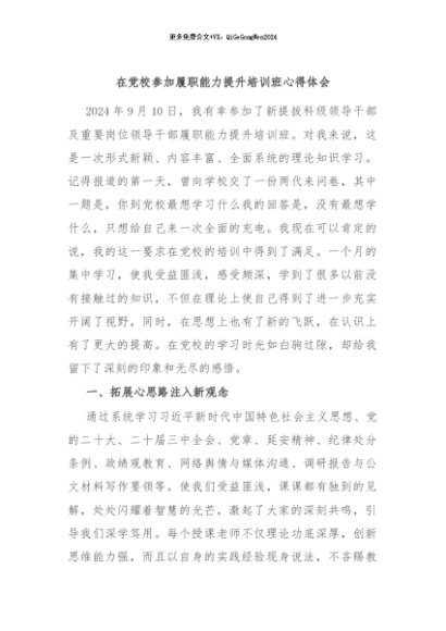 / 【七哥公文】2024年:在党校参加履职能力提升培训班心得体会+更多免费公文+VX:QiGeGongWen2024