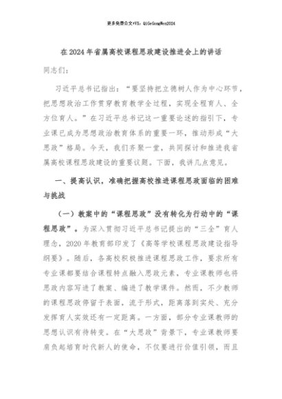 / 【七哥公文】2024年:在2024年省属高校课程思政建设推进会上的讲话+更多免费公文+VX:QiGeGongWen2024